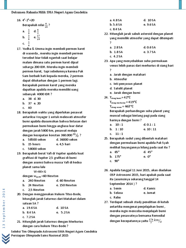 Contoh Soal Olimpiade Astronomi Tingkat Sma Dan Pembahasannya Dapatkan Contoh