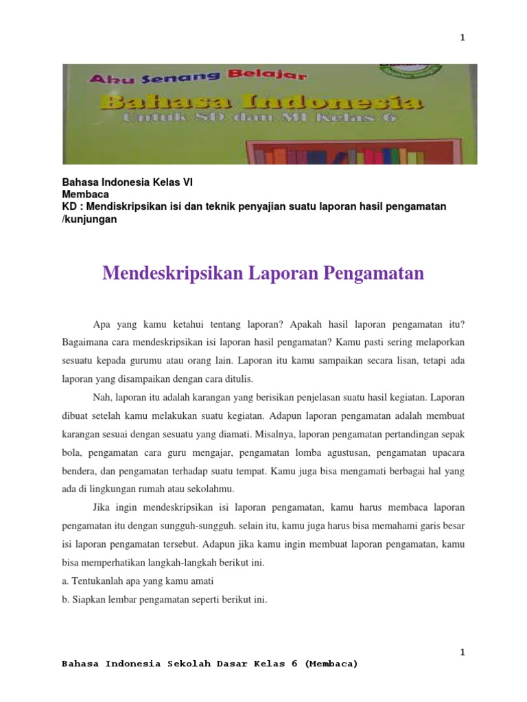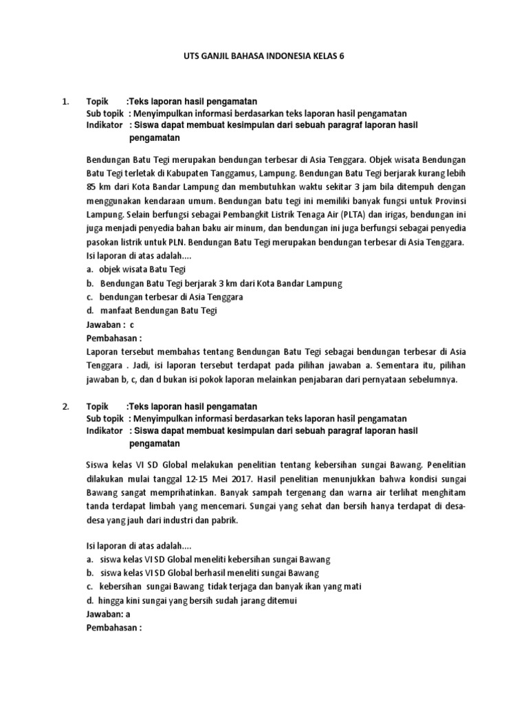 Kumpulan Soal Dan Materi Sd Soal Laporan Pengamatan Dan Percakapan B Indonesia Kelas 6 Semester 1
