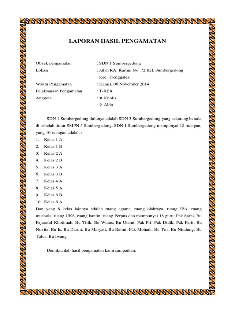 Contoh Laporan Hasil Pengamatan Kelas 6 Sd Kumpulan Contoh Laporan