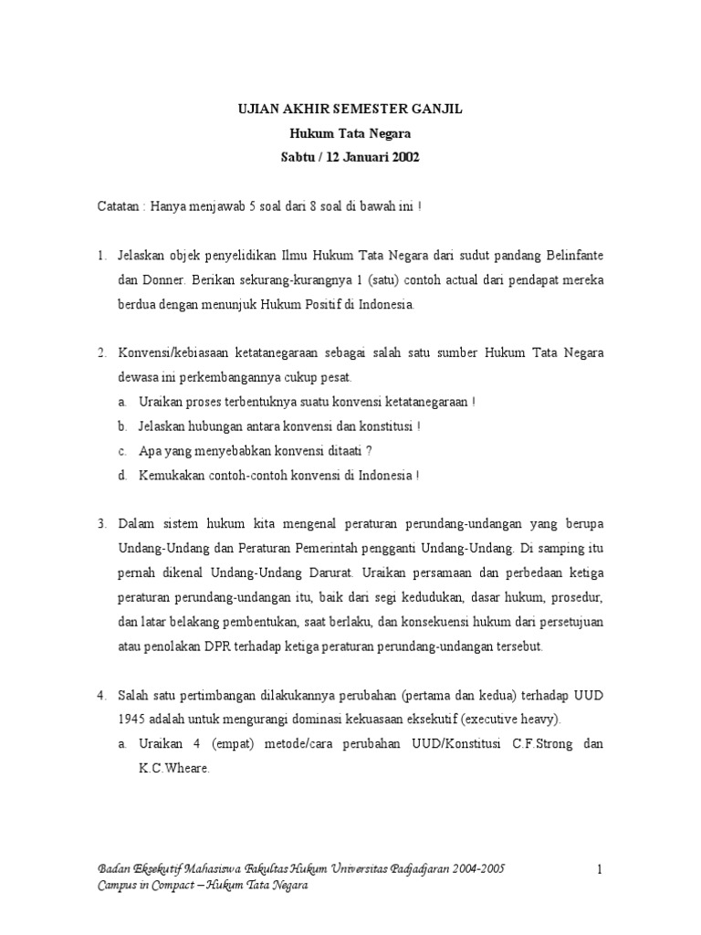 20191007 PEMBAHASAN Unsur Terbentuknya Negara pembahasan akan terbuka pada tab baru dan tab soal tidak akan tertutup 03. Hukum tata negara darurat objektif adalah hukum tata negara yang berlaku ketika negara berada dalam keadaan darurat bahaya atau genting. Latihan soal soal hukum tata negara sekaligus jawaban edisi 1 1.