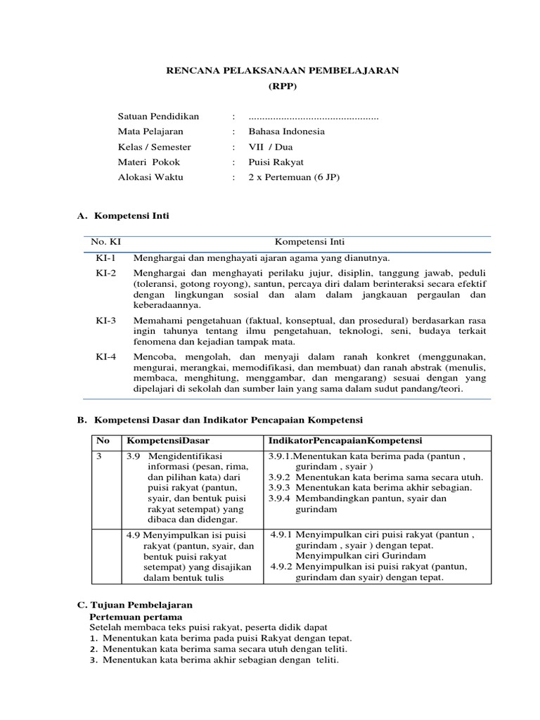 Rpp Kd 3 9 Dan Kd 4 9 Puisi Rakyat