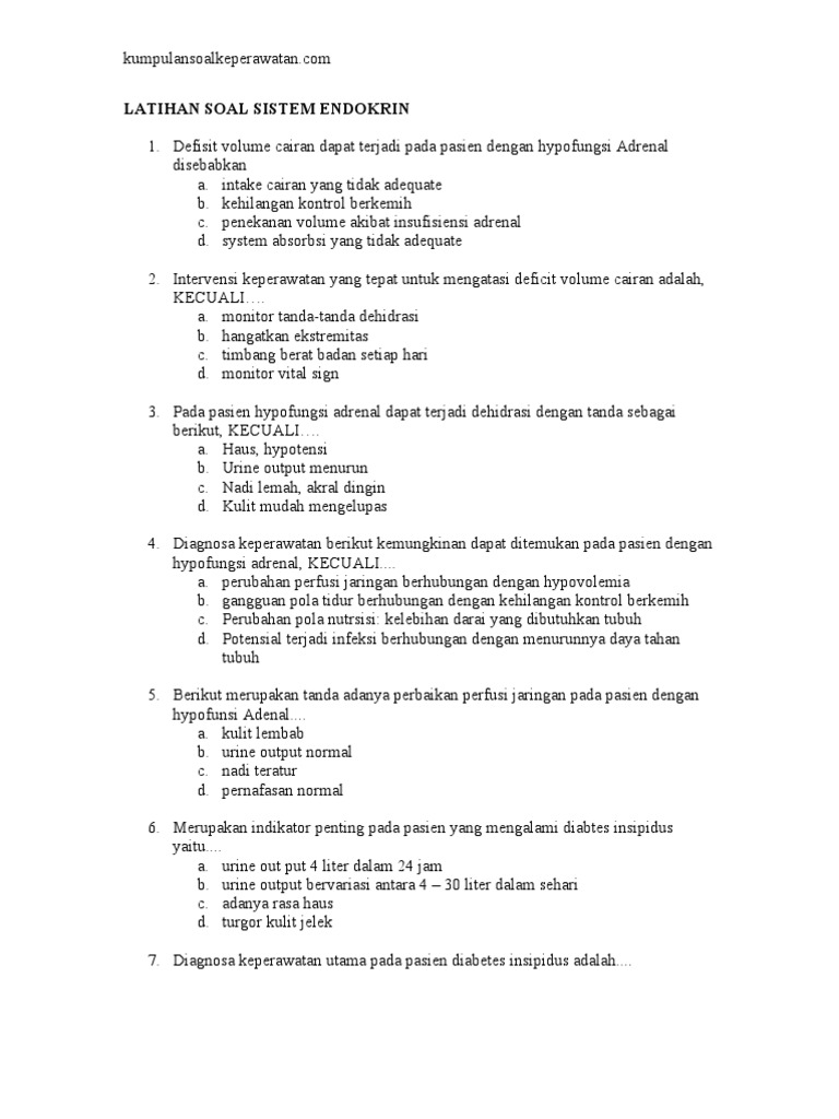 Selasa 24 Maret 2015. 7 Seseorang yang kekurangan yodium dalam tubuhnya akan menderita A. Soal serta kunci jawaban Uji Kompetensi Perawat Terdapat 5 buah soal 1.